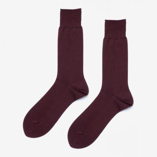 落ち着いた色調にひそむ個性。大人の品格が香るアクセントカラー。ネイビーやグレーの装いに、控えめに個性をを添え、革靴の色味とも美しく調和します。装いを柔らかく見せたいとき、ほんの少しの変化で品のある洒落感を演出できるのがボルドーの魅力。ドレスソックスに“らしさ”を添えたい方へおすすめです。