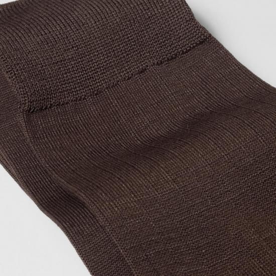 落ち着いた色調にひそむ個性。大人の品格が香るアクセントカラー。ネイビーやグレーの装いに、控えめに個性をを添え、革靴の色味とも美しく調和します。装いを柔らかく見せたいとき、ほんの少しの変化で品のある洒落感を演出できるのがブラウンの魅力。ドレスソックスに“らしさ”を添えたい方へおすすめです。