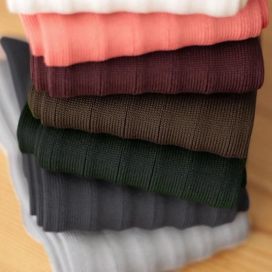カラーバリエーションは、クリーンでニュートラルなカラーから、ブラウンやバーガンディといった深みのある差し色までをご用意。靴とパンツの間にさりげない陰影やコントラストを加えることで、足元に奥行きが生まれ、装い全体の印象が引き締まります。色を変えるだけで、いつもの装いにも違った表情が生まれる──そんな靴下の楽しさを、ぜひ体感してください。