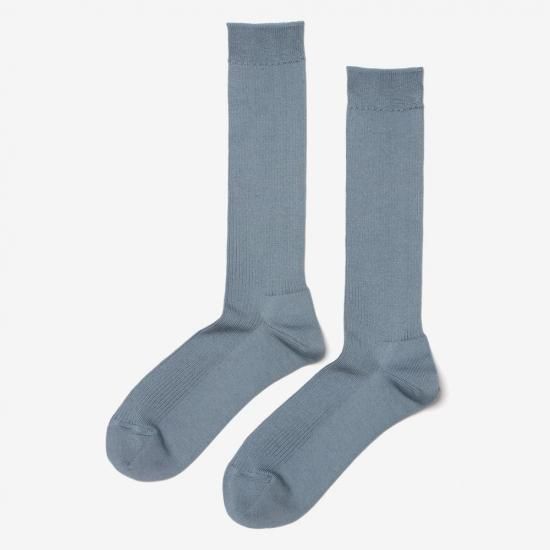 繊細な細目のリブと、ほんのり軽やかな色 ― レザーシューズやサンダルにもしなやかになじみ、装いに上品なニュアンスを添えてくれるソックスです。