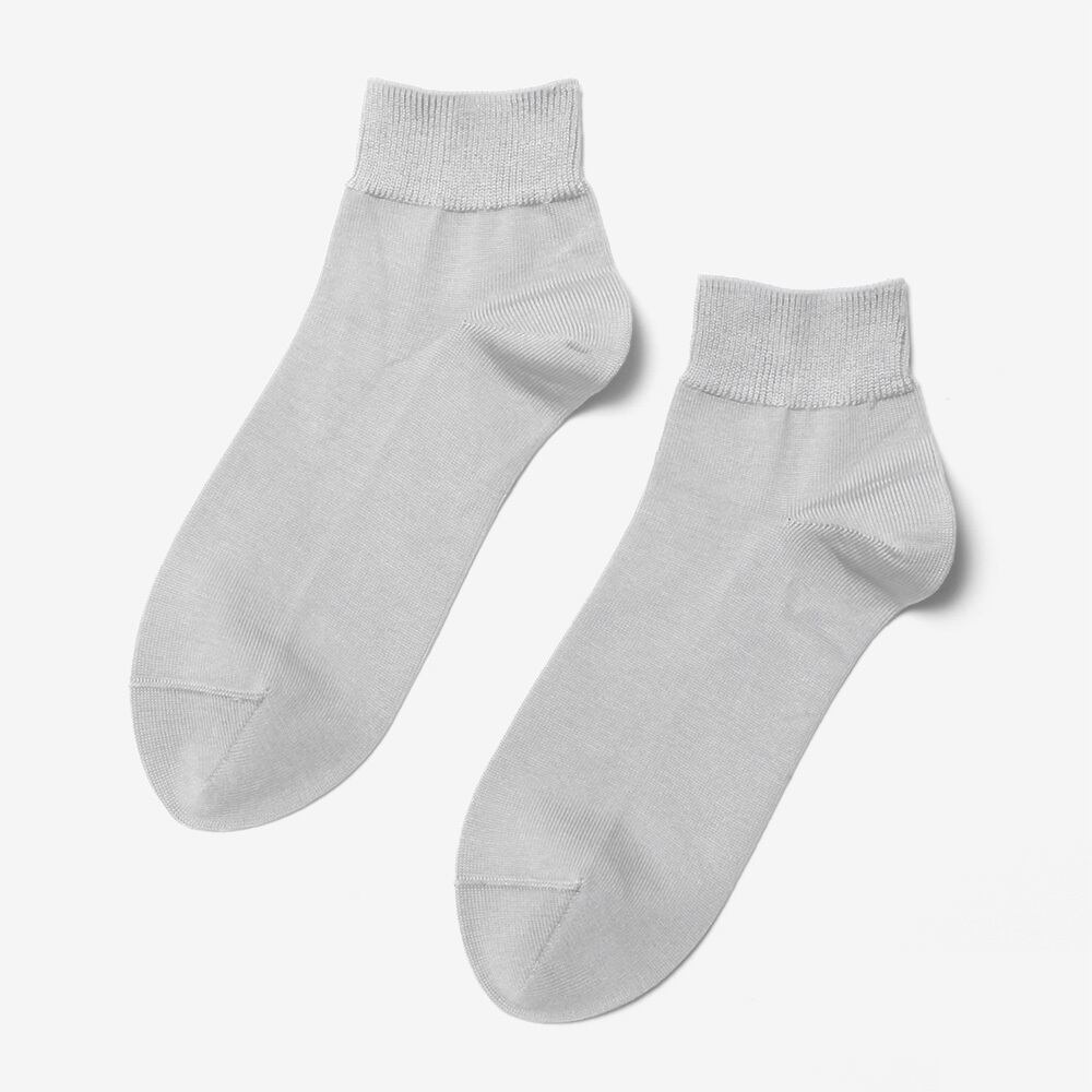 夏の装いに映える、装いの差し色として活躍する柔らかなグリーンやブルーもラインナップ。短め丈のパンツや軽やかなリネン素材の服と合わせて、足元に季節感と上質な抜け感を添えてくれます。パンツの丈感や靴のデザインに合わせて選びたい、洗練されたショート丈ソックスです。